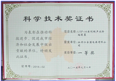 USP-M系列超聲波除垢裝置于2015年獲得牡丹江市人民政府 “科學技術一等獎”獎勵